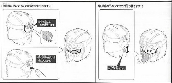 3. 眼睛神情可換 (類似大將軍可換眼的構造) 嘴巴可動 (動畫中說話會動的那塊)