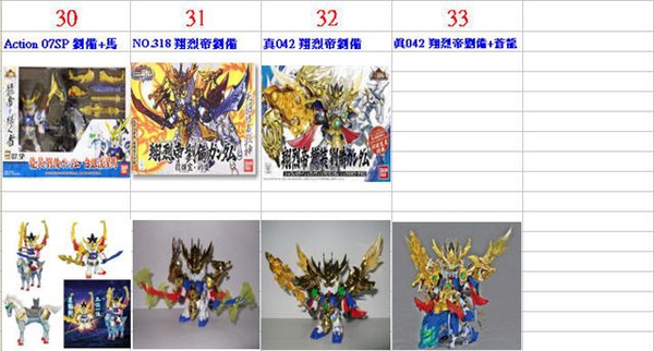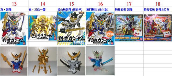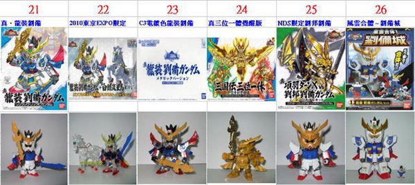 BB戰士三國傳的玩具 劉備這個角色前出了36款商品 (不包含扭蛋)