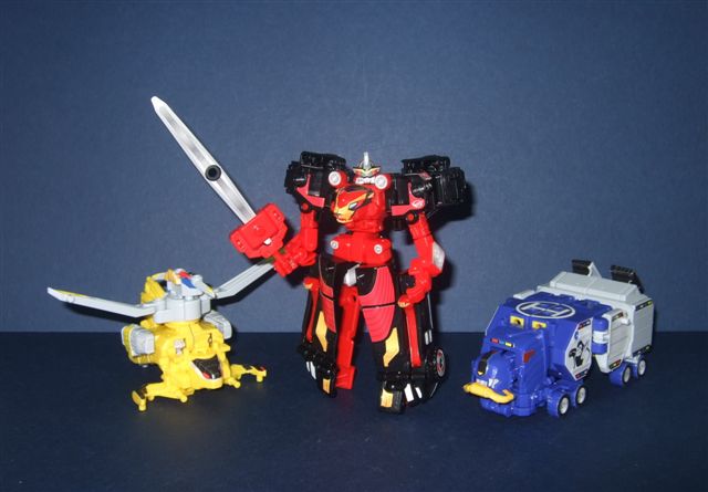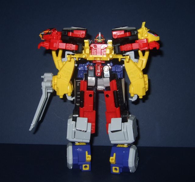 他是由 CB-01(紅豹)、GT-02(藍猩)、RH-03(黃兎) 合體而成的